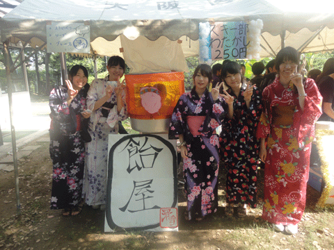 今年のスキー部の出し物はわたがしでした!!一年生女子はなんと浴衣です!!!
